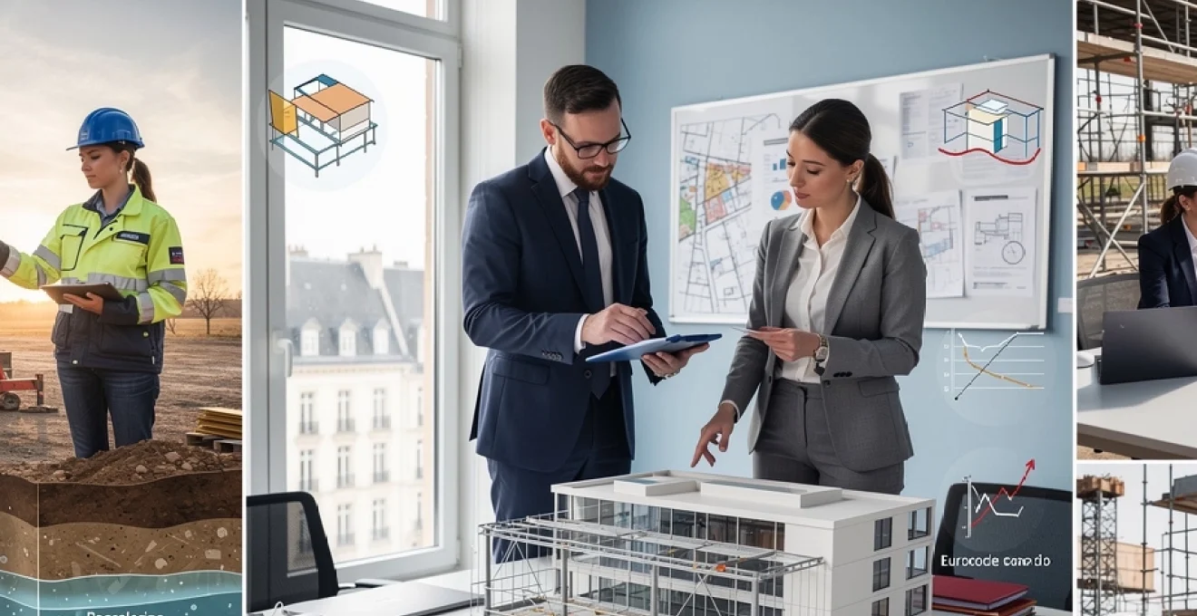 Une fois le cadre réglementaire clarifié, la phase de conception architecturale et de dimensionnement structurel peut se dérouler sur des bases solides. C’est à ce stade que l’architecte, le bureau d’études structure et les autres spécialistes (thermiciens, acousticiens, économistes de la construction) transforment les intentions en plans d’exécution fiables. Les Eurocodes, aujourd’hui incontournables, servent de langage commun pour vérifier la résistance, la stabilité et la durabilité des ouvrages.