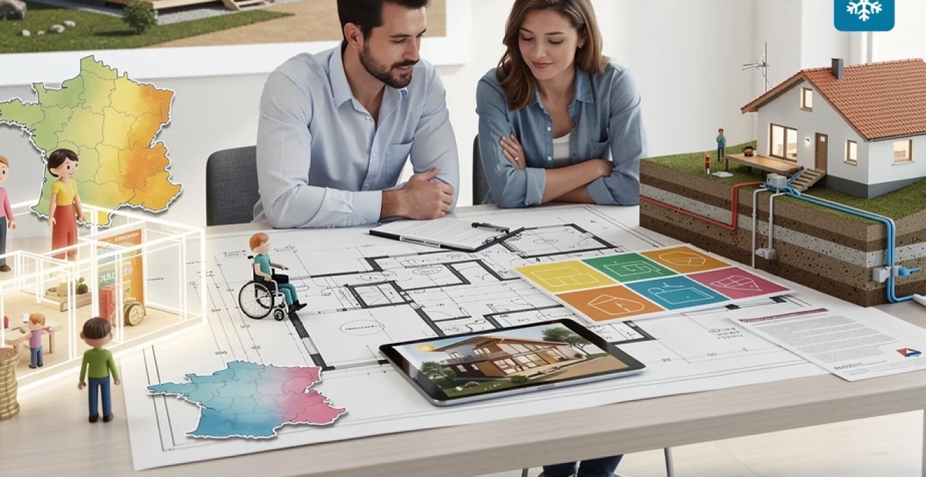 Tout plan de maison doit respecter la réglementation thermique en vigueur au moment du dépôt de permis. La RT2012, encore applicable à certains projets, impose un niveau de consommation énergétique maximale, tandis que la RE2020 va plus loin en intégrant l’empreinte carbone du bâtiment et le confort d’été. Concrètement, cela influence l’orientation, le ratio vitrages/murs, l’épaisseur d’isolant, ainsi que le choix des systèmes de chauffage et de ventilation.